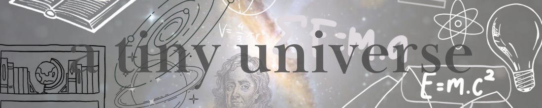 a tiny universe is my little hub here on Substack, where I share anything relating to maths, science, or my life and interests (a dash of existential crisis as it says on the tin). I post fortnightly on Sundays but occasionally drop the odd sporadic titbit whenever inspiration strikes. This is my first sort of website, so I’m new to the whole thing and am currently going for the learn-as-you-go approach. Hopefully, nothing will crumble to dust, and who knows - perhaps people might even like it here…?